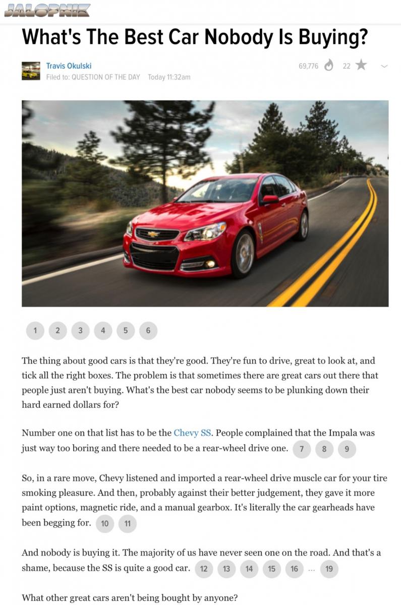 If there are adverts of TV how often compared to other models in the GM lineup? How many are in dealerships being shown off? The sales numbers are low because of your import restrictions and hence lack of advertising. |