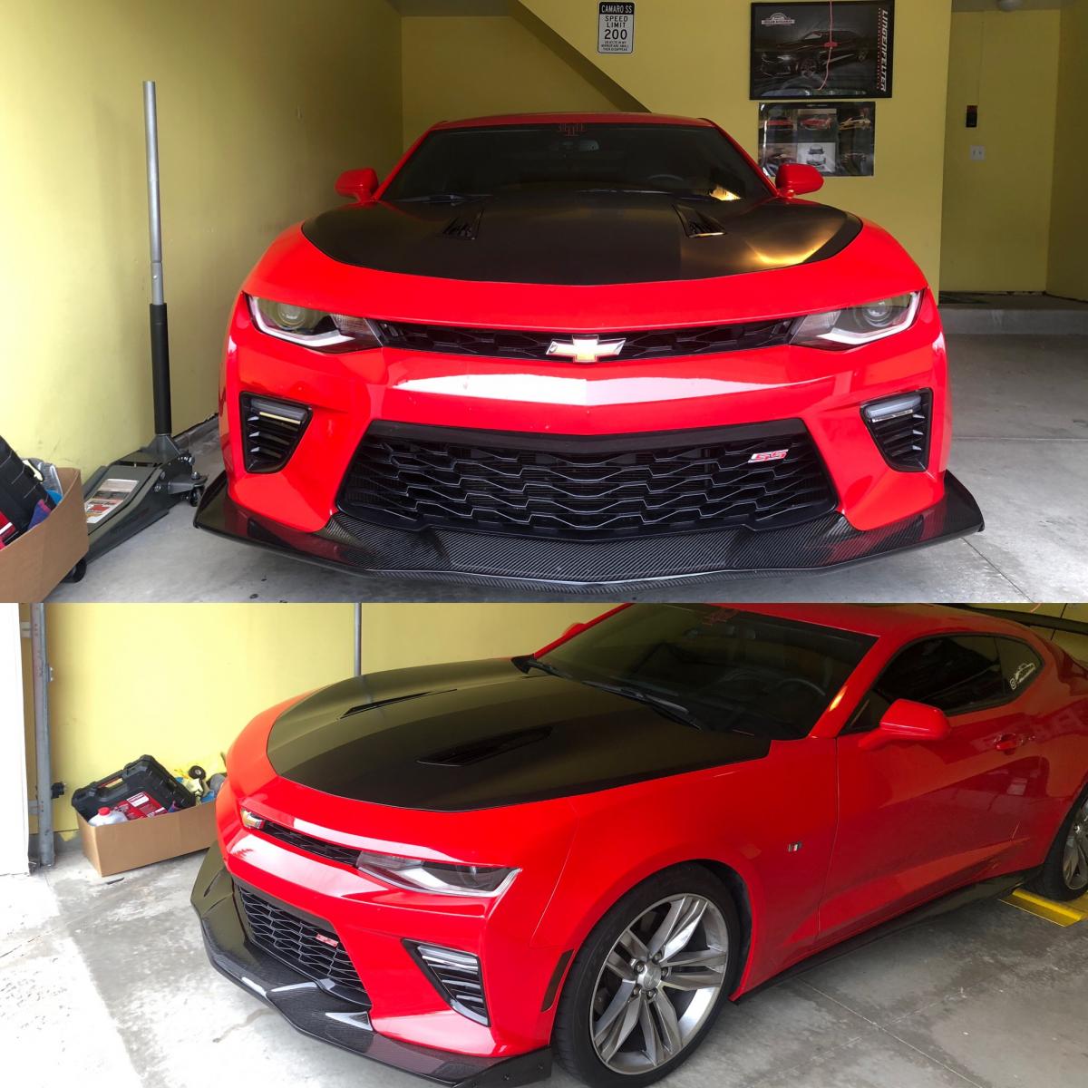 This is what the Satin Black Avery Dennison Vinyl Wrap looks like to get an idea.I personally love it. It gives it a good contrast between the gloss black.Lucky for me Metrorestyling is not to far from me and I go to their shop to get an idea what it look like before putting it on. https://www.camaro6.com/forums/pictu...ctureid=162453