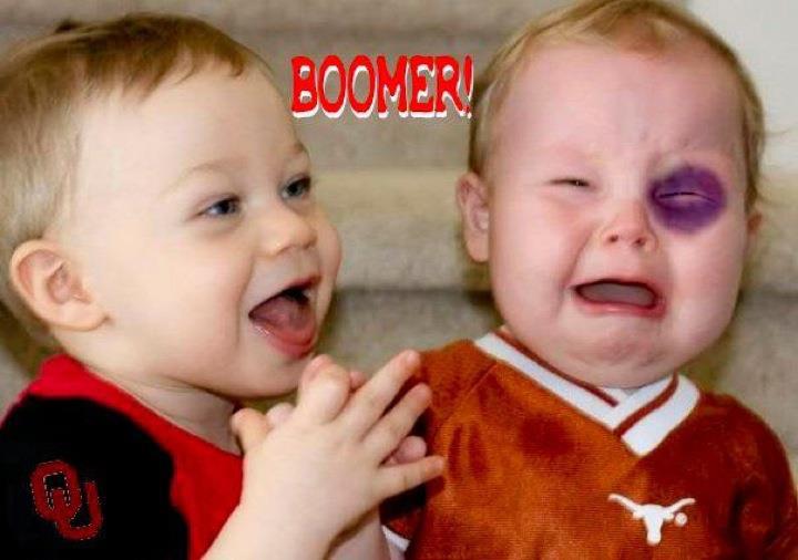 Actually the UT baby got sucker punched by the OU baby for making fun of his OU Daddy. See for yourself!!!
