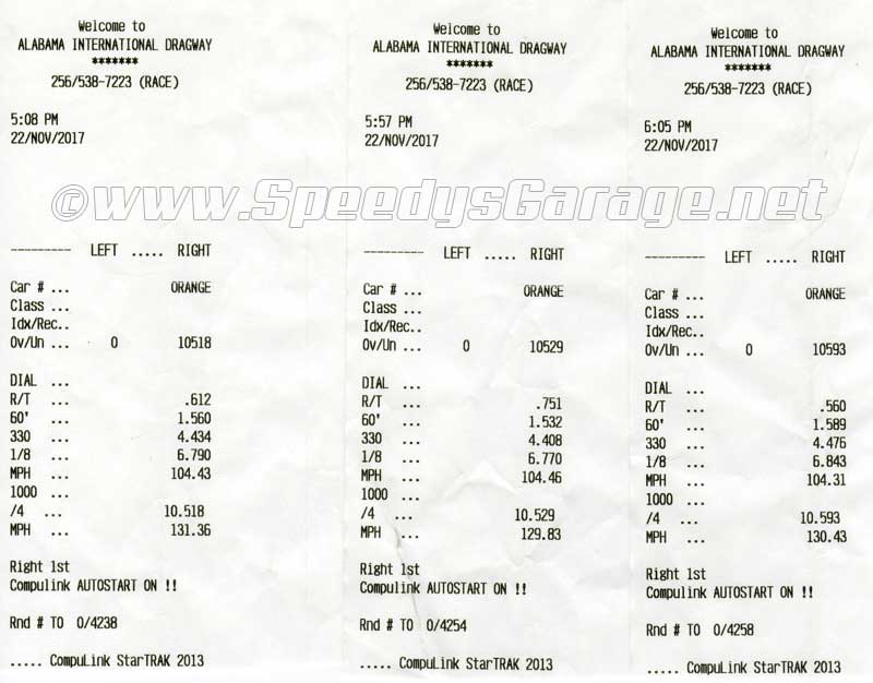 This is my 2016 Hellcat Raceweight about 4400# Race tire/wheel setup Aluminum DSS Drive Shaft Rear Differential Brace (strength) WOW - one pass looked like it coulda been a 10.4x....gonna review data logs to see why not based on the 60' compared to the 10.51. Very impressed with this car. These were shake down, once I get to know it a bit better I'm confident I can launch it even harder. I've got some video and what not I'll post up later, but for now here are the slips. The last one was a hot lap ![]()
