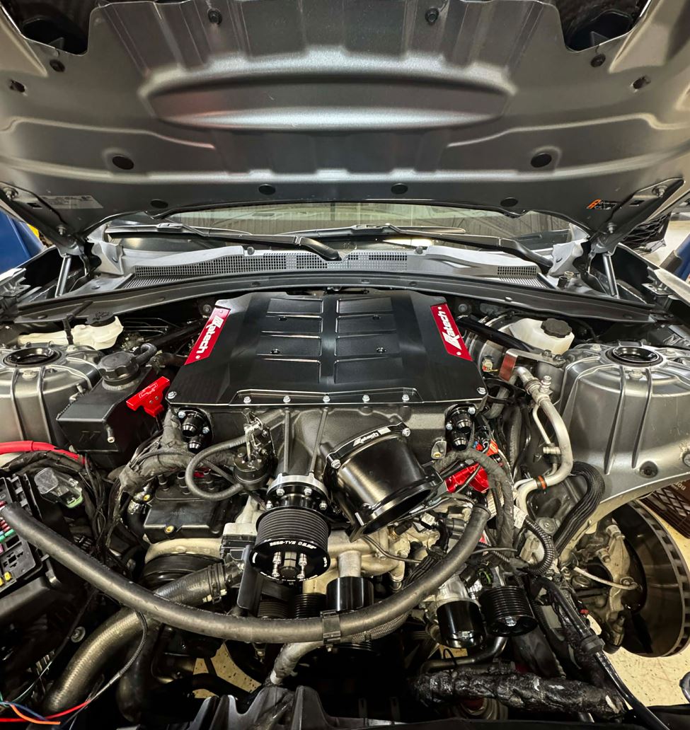 2017 Red Hot ZL1 A10 - Apex ARC-8's, 305/ 325 PS4's, DSX 9.06 12% lower, Griptec 2.5 upper, NGK HR7 Ruthenium plugs, Nostrum 22+ injectors, XDI Goliath HPFP, Katech dual in tank low side pump, Katech oil pump, LME tensioner, DOD delete, LT1 big fuel cam, Jokerz ported blower, MPI lid, GMS hood extractor bracket, Soler ported 87mm (91mm eff) TB, Granatelli SS plug wires, Cordes LTR reservoir, DMS T-stat housing, 186* LS3 T-stat, Black Widow Angry Housewife/ Corsa NPP mufflers, Borla X pipe, BMR engine mounts, Banks iDash, Lithium Battery, AEM X- Series, HP Tuners, E85, 16.5 psi