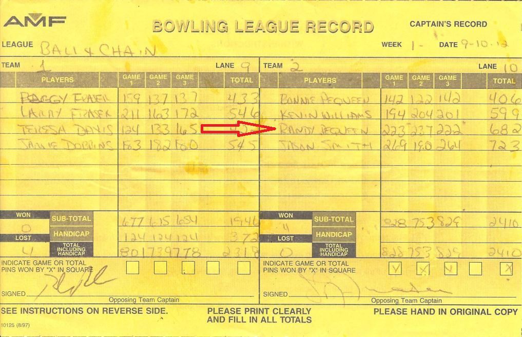 Ok, first night for Monday night. Set a high average and as a team we set an 800 team average.