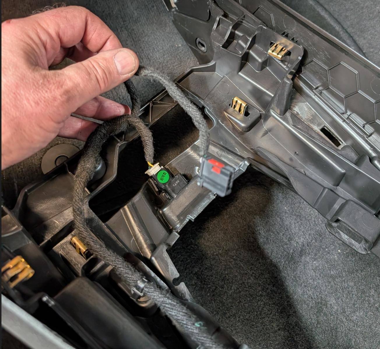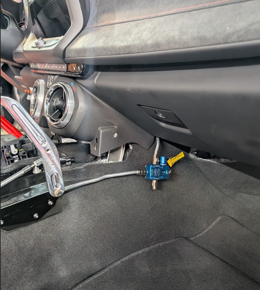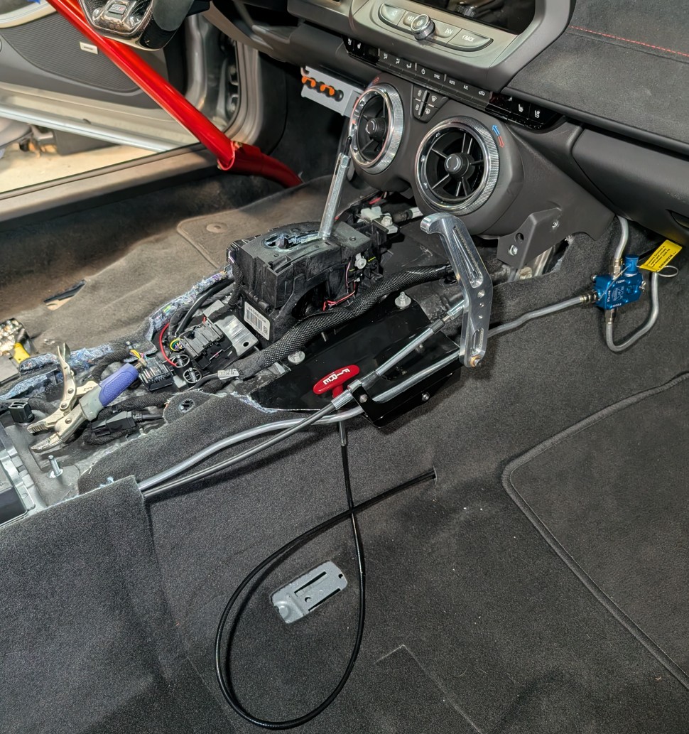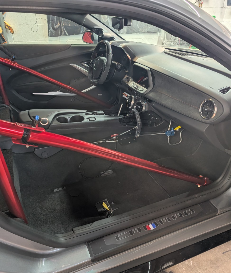 Update #1: Made a lot of progress this weekend. But OMG am I beat! Parachute Kit and Fire suppression kit are 100% installed (minus 2 brackets I'm going to make to hold the nozzles in the engine bay. Rear Seat Delete is installed once again and center console is in place but there is a wire harness connector I can't figure out where it goes. It's connected the the harness that's attached to the under side of the center console, so it must connect somewhere to the car under the console? But, I can find a connector or another wire to connected it too anywhere (I included a photo of it). I've had my console out at minimum 5 times in the past and don't remember this wire. I always remember 3 connectors. The wireless phone charger USB connector, the larger and smaller connectors located about the center of the trans/driveshaft tunnel. Maybe it's for an option my car doesn't have (But I don't think they do that) and therefore connects to nothing? In the photo the console is upside down and the view is looking into the under side.