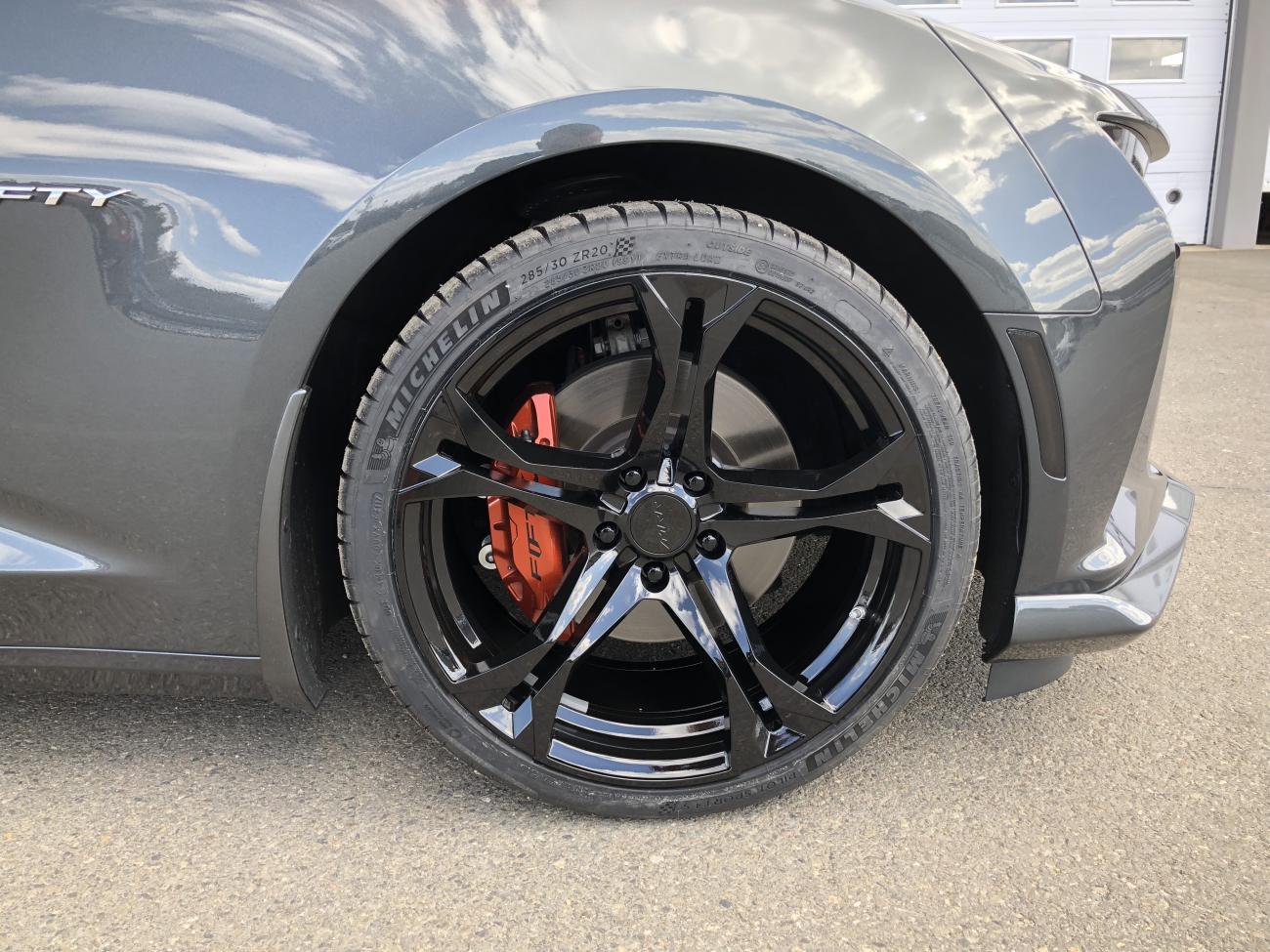 Okay - just got MRR017 gloss black with MPSS4 tires...305 rear and 285 front. Also had Borla s type axle back installed...with carbon tips...very pleased.