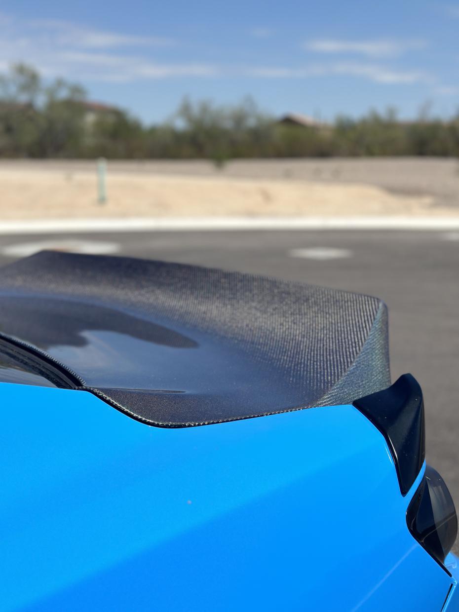 Finally got my Carbon Fiber clear coated with a little custom spray and removed the 1LE spoiler with fins and it looks really good! The fins left on here before I removed them but you see the vision lol. Overall the trunk is really light and the gas struts seems to over power the trunk so I may remove those later but overall I like how everything came together. I’ll get fenders down the road but for now this is the most weight reduction I will do for a street/track car. The next step is improving as a driver and knocking down lap times. I’ll add interior stuff like carbon fiber to enhance it a bit.