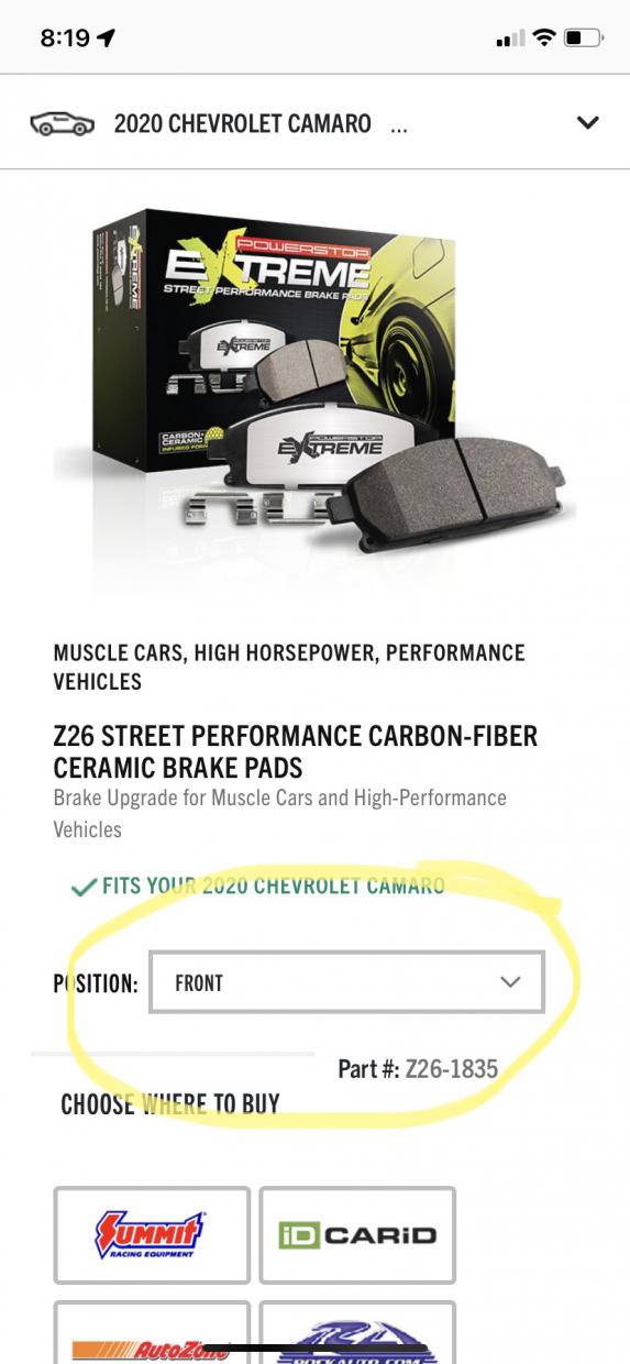 Almost convinced! So what is the part number for the Z26 Powerstop pads for the ZL1? Is it the Z26-1835 for the front ones?