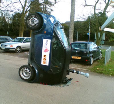 We can presume, or at least hope, that in addition to the car (and I use that term very loosely) being displaced, the officer (again, term used loosely) was issued a wedgie and a swirly.