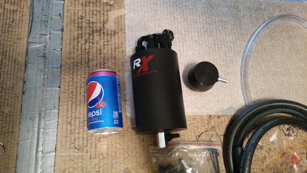 Okay, I want to make sure everyone gets a catch can. I don't care what brand, so long as it works. There are several viable options. Today I installed the RX Monster Can. They call it the Monster because it holds a lot of capacity. Somewhere between 20-32 fl oz. To me, this was the selling point. I will say this can wasn't cheap, but it is extremely effective and won't fill to max as often as other cans on the market. If your can is full, and you continue to drive, bad stuff happens. Capacity is a huge perk of this can - I can not stress that enough. It also has a built-in 1/4 turn drain valve. You'll never need to remove the can from the car once properly installed. This can will mount to the driver's side cylinder head utilizing an unused bolt hole. Also, you will need a box cutter or X-Acto knife. You will be manually cutting lengths of tubing.