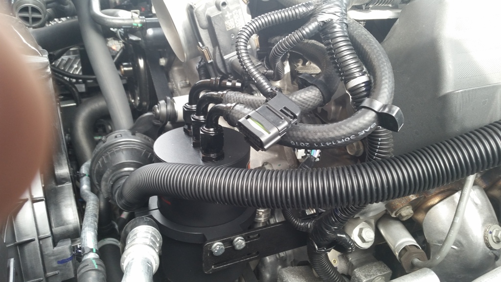 With that said, as a disclaimer - several people had issues out of this brand on the 5th Gen Camaro. It wasn't common, but it did happen. It seems that the problem was with the 1-way check valves included with the kit. Sometimes, they would apparently freeze up when cold, and allow pressure to build in the crankcase. Thankfully, you don't have to install the 1-way check-valves. They are OPTIONAL. GM doesn't use them in the factory setup, and neither did I. I would suggest not using them unless you are under forced induction. The same goes for the clean side separator (the piece that replaces the oil cap). Completely unnecessary. GM has a solution for the clean side on the 2016 Camaro. Now, to the install and pics... You will need to go to the hardware store and buy a bolt, washer, and lock washer. The bolt size is a 3/8" (can't remember thread pitch. 16 or 24) x 1" long. Stainless would be my choice. Everything else is included with the kit. It comes with a lot of little additional pieces to make your setup work. When it is installed, the can will be almost invisible. You will need to remove the intake tube and air filter housing to drain it. That takes around 2 minutes tops. For the rest, I will tell my story with pics... Last edited by dragonZ28; 02-07-2016 at 03:02 PM. |