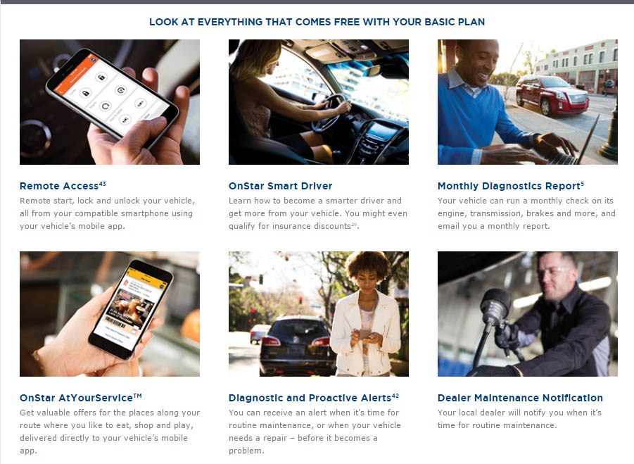 Here are the details of the free basic plan and the individual items you can add-on. https://www.onstar.com/us/en/plans-p...asic-plan.html I'm gonna stick with the basic plan and maybe add the Stolen Vehicle Protection for $5 month. Here are all the plan packages https://www.onstar.com/us/en/plans-pricing.html