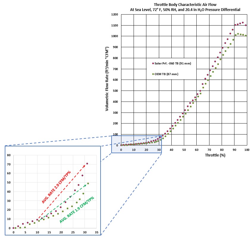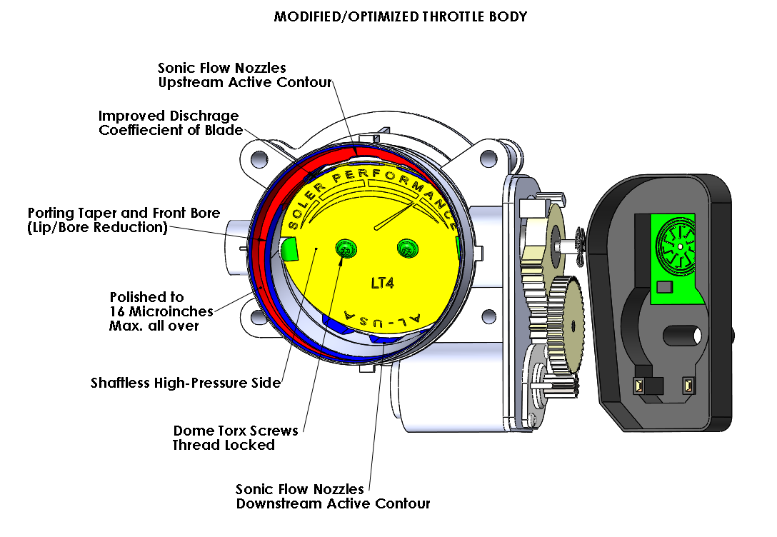 - Throttle Lag - Delayed response - Car feeling heavy or not nimble - Difficulty climbing hills at low/moderate throttle - Uncertainty when passing other cars or unpredictable response at low/moderate throttle - Stumble when shifting on manual transmissions You name it, this has been my issue w/ my Corvette 7 since test driving at the dealership. I've tried a Throttle controller, AFM disabler, ECM Tuning, and arguably the three most talked about ported throttle bodies (PTB) out there. I have also combined some of the above w/ some success but still not enough. One just needs to hop into almost any other comparable car to feel they respond better. After spending so much time/money, I decided to take it upon myself to find out, I also have all the equipment needed at work (measuring, testing, simulating, machining etc.) Long story short; it is the throttle body. Between idle (~5 degree throttle) to ~30 deg throttle angle the amount of mass air flow (which is proportional to power) puts our cars at a weigh to power ratio similar to that of trucks and SUV’s, both in terms of absolute value and rate of change. Not to be confused w/ the weight to power ratio that is usually published, which is calculated at WOT, above 35 deg throttle angle our engines shine. It is on the part throttle range (idle to 30 deg) that the issue exists. I’m not going to speculate on the reasons, but I can tell you that our throttle body p/n 12678223 or 12620263 is used in many GM vehicles and that such throttle response helps w/ fuel economy. That helps to keep parts cost low and meet EPA requirements for the fleet. However, I do not think one size fits all and that a high performance car needs to sacrifice performance for economy. The throttle controller and the tune improve response by making the throttle plate move faster between the 5-30 deg range. Faster, but it still needs to go through a tortuous path for the air flow, and the manifold pressure doesn’t recover as fast. It is a transient process, and it is from the intake manifold where the pistons suck the air from. Notice that this is not true throttle response, it is just tricking the ECM into thinking you have pushed the accelerator pedal harder. The actual throttle response is the same, only physical changes to the throttle can make for a true throttle response. The existing aftermarket ported throttle bodies also helped, they do change the throttle physically, but their effect only starts to take place at about 25 deg in what I thought was the best one of them. Definitely a step in the right direction, but I noticed they were not optimized and that more could be extracted from them, that is a throttle body that can increase the absolute value and rate of change of mass air flow right from idle and up to 35 degrees to achieve the same weight to power ratio (in that range) of similar high performance cars that feel nimble and fun to drive at part throttle. Another long story short, I reversed engineered 10ea OEM throttle bodies, 3ea aftermarket ported throttle bodies, and a benchmark (competing car maker model) OEM throttle body. Optimized/modified the OEM throttle body to meet the benchmark throttle response as well as the goal stated above. Our modified throttle bodies (MTB) are made (CNC machined) from a brand new OEM throttle body, flow and engine tested. Our design has been fully vetted by Corvette 7, Camaro 6, CTS-V owners, fully and openly tested by Corvette Forum members mainly. Driven in different conditions/modes for a few thousands of miles now at extreme temperatures and altitudes. See pics below for more insight into what I’m talking about…and most importantly what do you think? All comments welcome. Please visit us at : SolerEngineering.com Thanks, Last edited by Mike@SolerPerformanceLLC; 03-27-2020 at 04:01 PM. Reason: added flow test data |