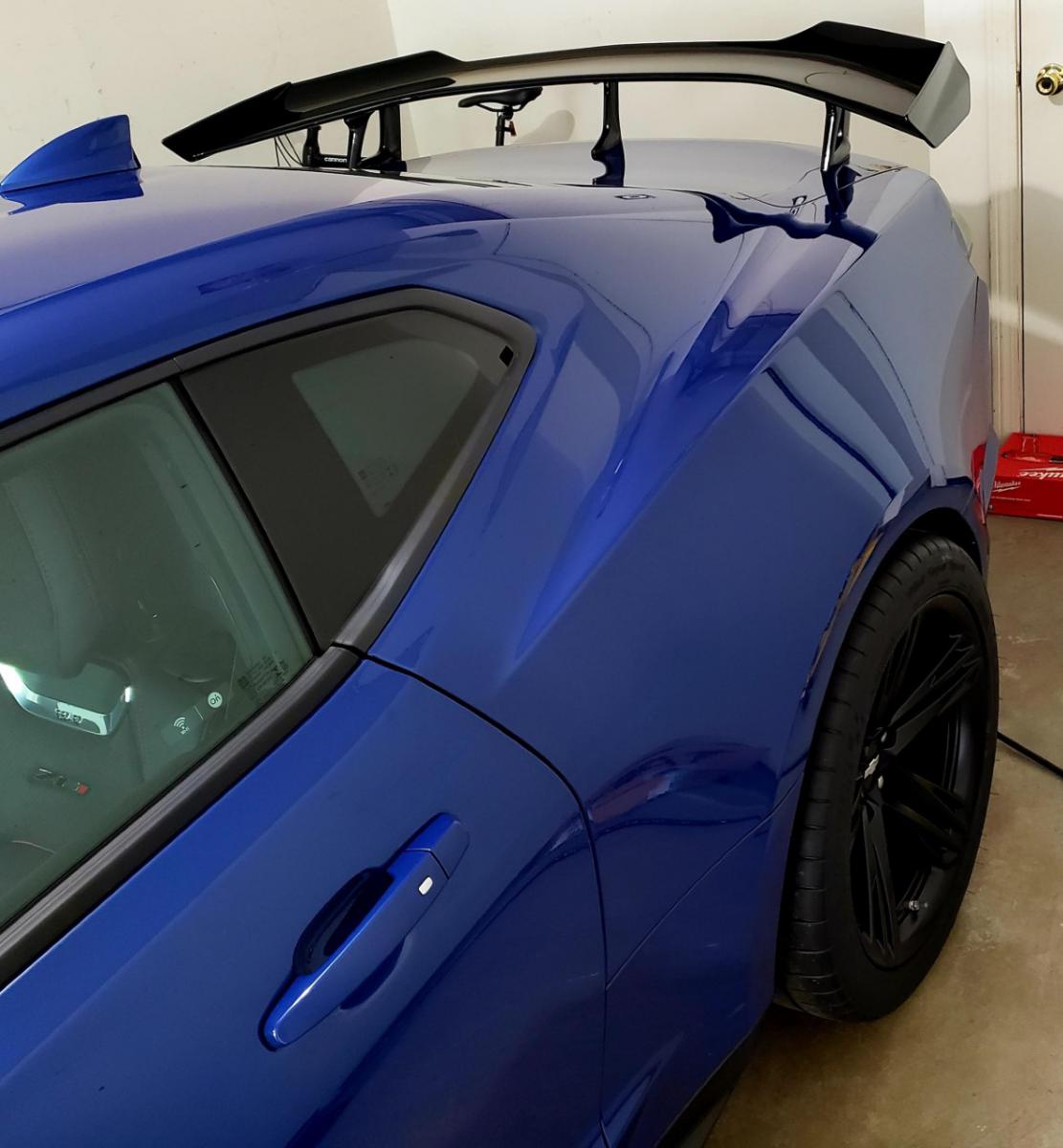 Aftermarket ABS spoiler painted black meet kettle WA384A original ZL1 black metallic paint. Winglets affixed with JB weld for plastic and composite 3700 Psi. Paid $450 for the spoiler + $300 for winglets assembly, prep and painting. I used for 3 months until I received my Anderson Carbon spoiler. It is still in near perfect condition, no visible dents or scratch. Asking price $500 + shipping. Last edited by FalconerOneSeven; 12-07-2020 at 12:45 PM. |