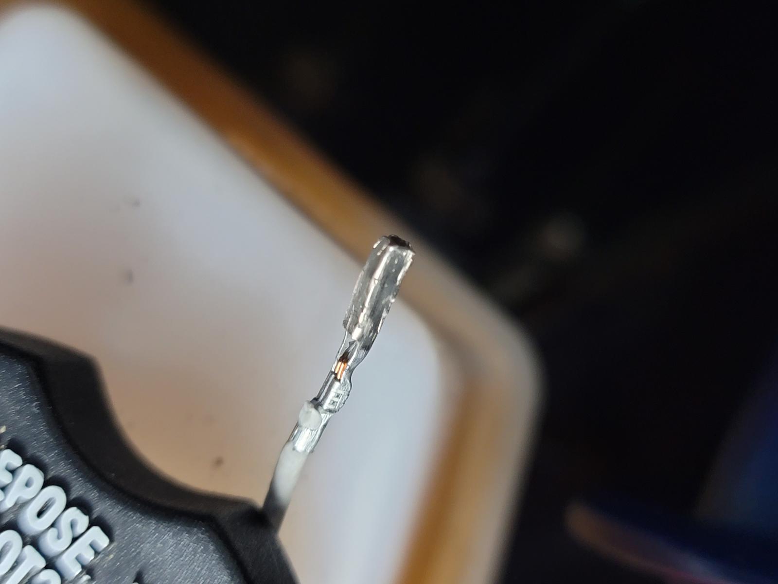 Errr. Butt connector. In a pinch this will work or should but a better method I believe through experience is to solder that wire to the existing wire. My experience on all sorts of cars and different equipment. If it was lights I wouldn’t say much but for ecm stuff we as in my coworkers and I will typically solder unles it’s super windy amd snowing/rainy like a biotch.