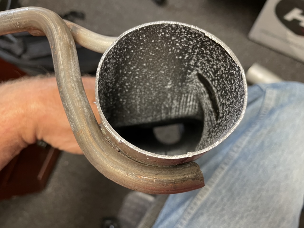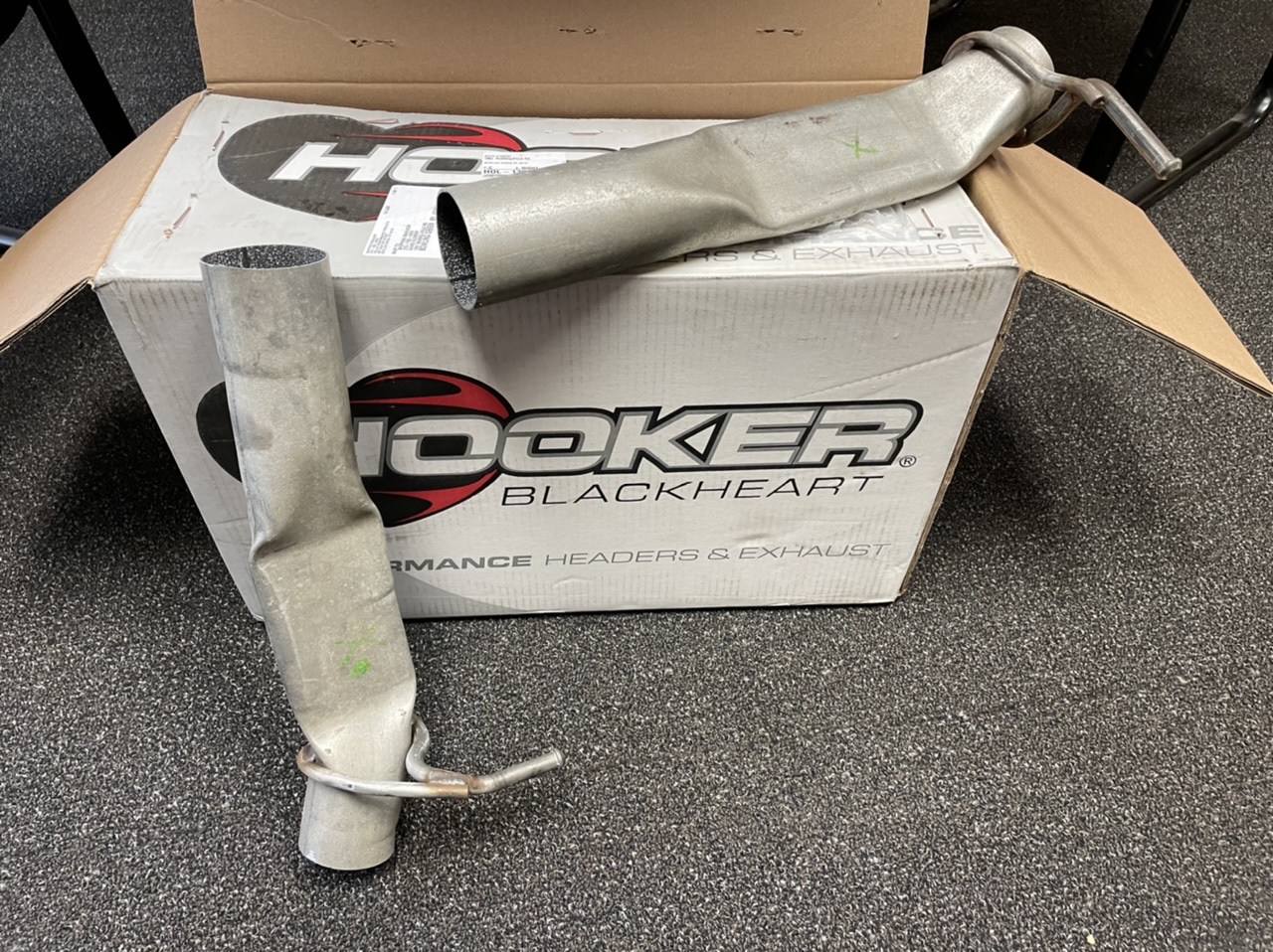 I just put on the Hooker Blackheart Crush Delete pipes. Sound is about the same in “Touring” mode and light throttle but a bit more raucous when I switch to “Sport” and nail it. Perfect! I know that this topic has been beat to death but I couldn’t find any direct posts. Seems like even if the car has enough flow capacity to accommodate the stock engine through the crushed sections, if you add a few mods that seek to move more air through the engine the story might become different. With these in place at least the crush areas are no longer the first, and most obvious, point of restriction in the stock exhaust. I like the stock NPP otherwise. Here are a few photos to show what came out of the car along with the first page of the kit instructions. They make another SKU for the automatic cars.