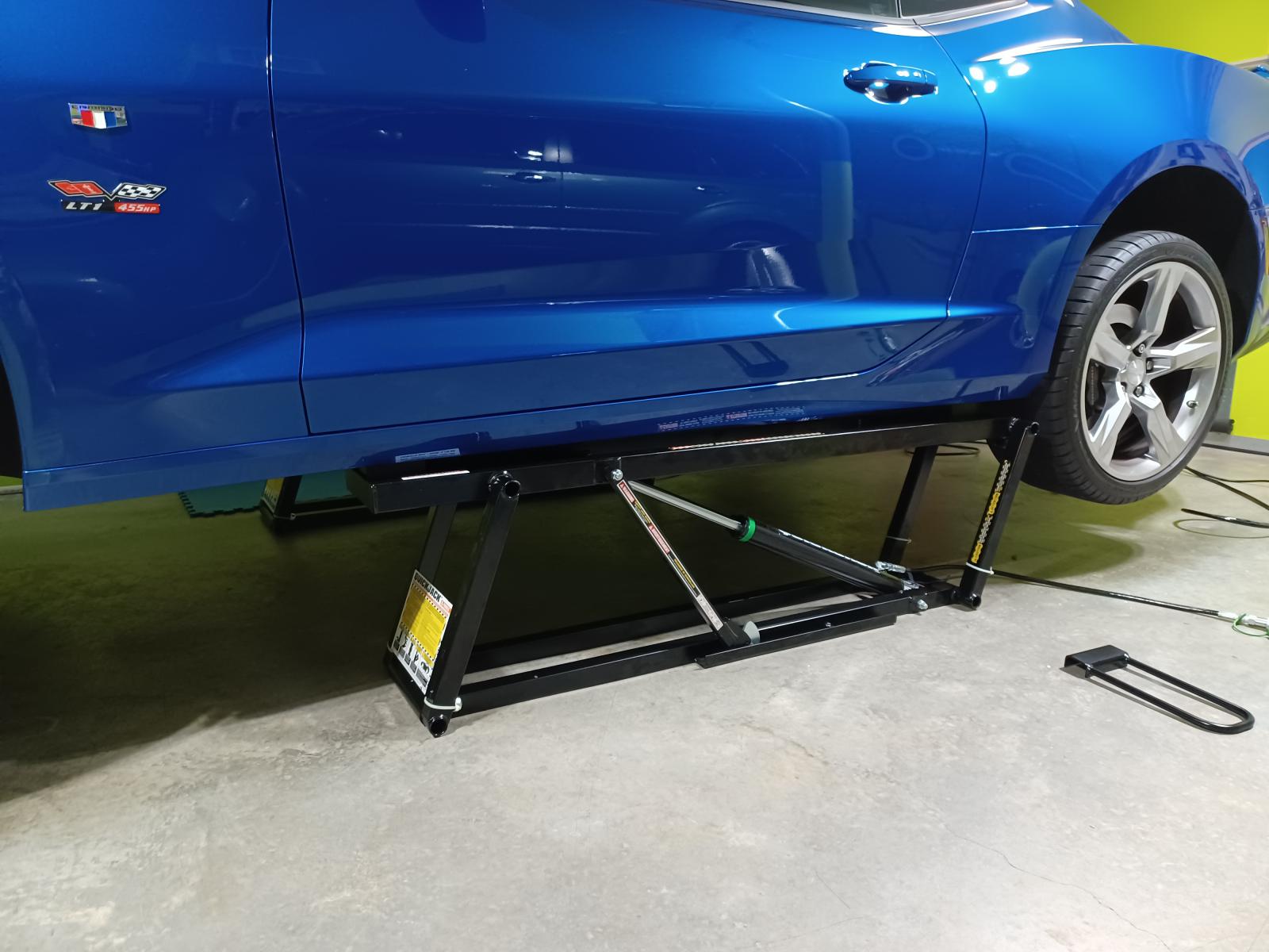 Got my quick jack bl 7000 slx. Jacked up my 2017 camaro SS, worked perfect. I have 3 bolt on aluminum pinch weld blocks on each side. From front to back I used the second one and the third one to lift it. I used the tall rubber blocks and placed the horizontal blocks. It's perfectly solid when in the air. I also zip tied 4 roller ball bearings to the frames to easily roll it under the car for easy storage.