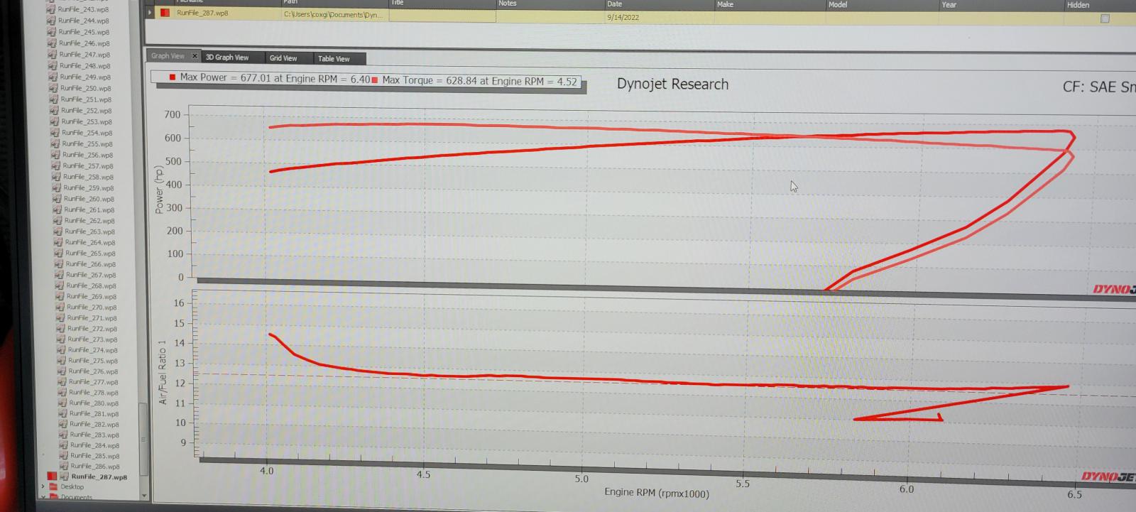 I just got another copy of the dyno chart from Steve at Davenport. In this one, he had his calibrator add the AFR to the chart.