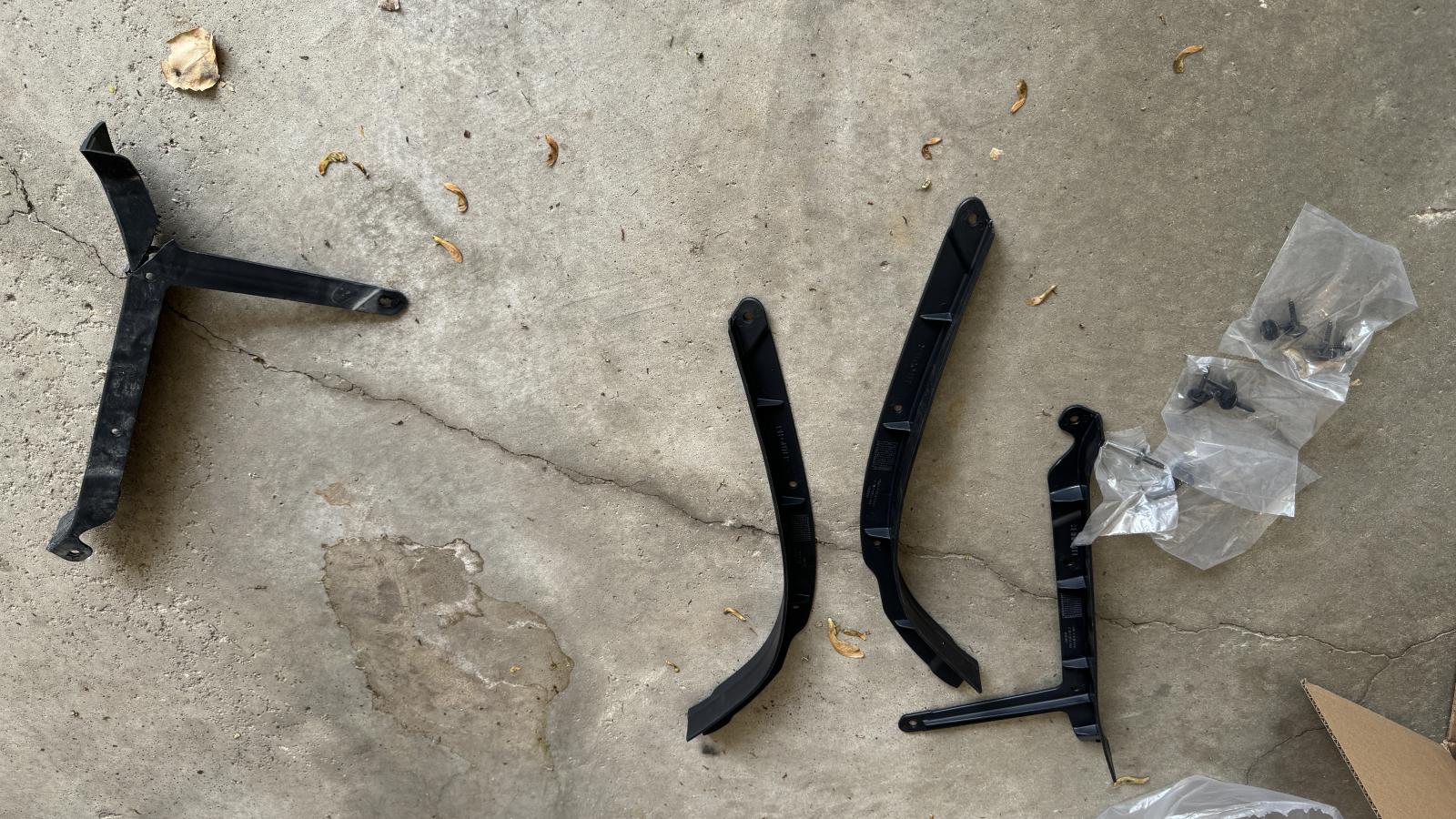 I only needed one of the passenger side deflectors (see the one that is cracked.) The other three are original/unused. They come with attachment hardware.