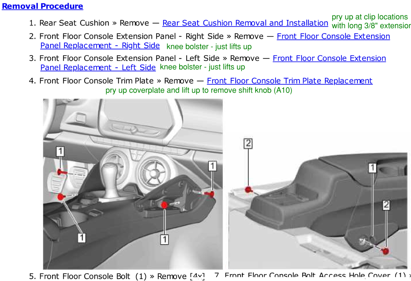 To remove the center console you just remove six bolts and the shift knob. The seats can remain in-place (just move forward or backward to access bolts. Under the center console you can tap the same Violet wire easily on either side of the console harness (vehicle side and console side). Here is the accessory port wiring intercepted and soldered on the console side (before covering): ![]() And this is after insulating and covering: ![]() You can also access on the floor, where the Violet wire enters the harness. Which side depends on if you want the device to stay with the console or not. In my case, I wanted power for a radar detector (vehicle side) and an additional power socket in the console (console side), hence two tap locations. On the floor location before covering: ![]() After covering and showing a terminal block for easy power adds to this circuit later: ![]() The power socket I added: ![]() The cord for that power socket routes to my phone mount, you can also see my radar detector which is hard wired to the vehicle side of the violet wire. ![]() Routing the radar detector cord required removing the a-pillar cover to ensure the cord did not conflict with the airbag and stayed hidden in the dash. I covered the power cable with Tessa Tape so it looks stock and secured with factory wiring.